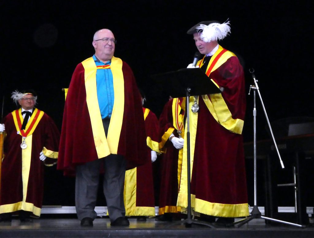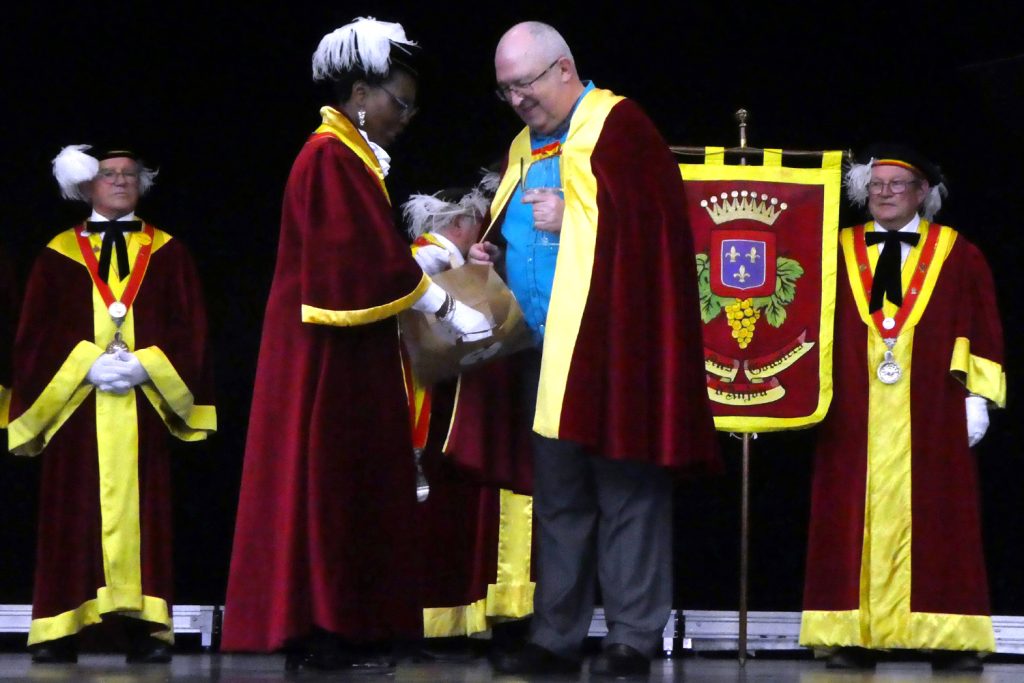A l’occasion des 40 ans de la chorale KaléidoVox de Murs Erigné, nous avons eu l’honneur d’introniser Michel Houdbine, afin qu’il soit fait Chevalier des Fins Gousiers. Une cérémonie fort sympathique pour Michel après 36 ans en tant que chef de cœur de la chorale, en présence de son président et d’une centaine de personnes.