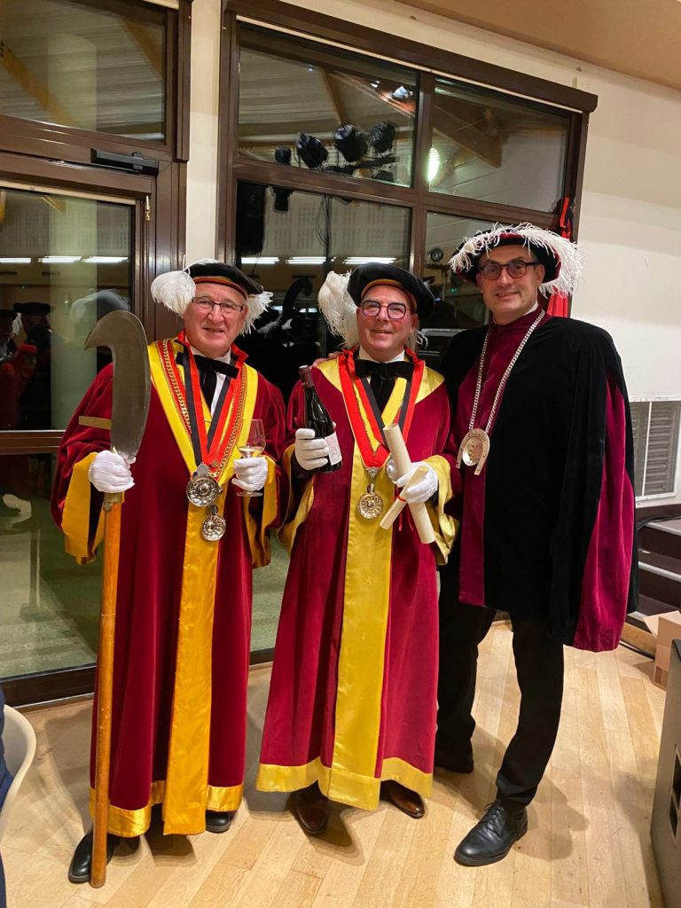 Les représentants de notre Confrérie, Jacques Lecomte Grand Maître et Antoine Van Der Hecht du Docte Collège, ont été honorés lors du chapitre par leur intronisation dans la Commanderie.