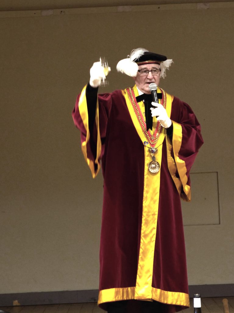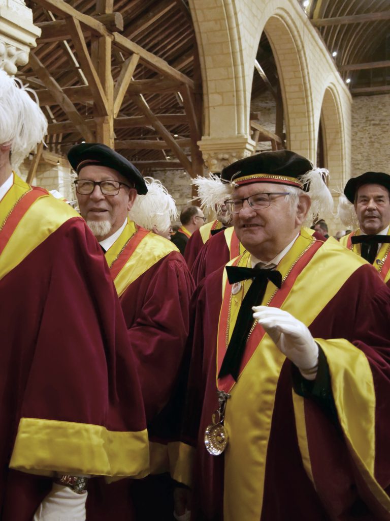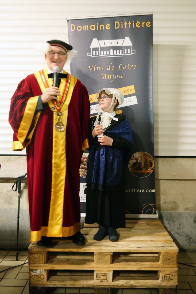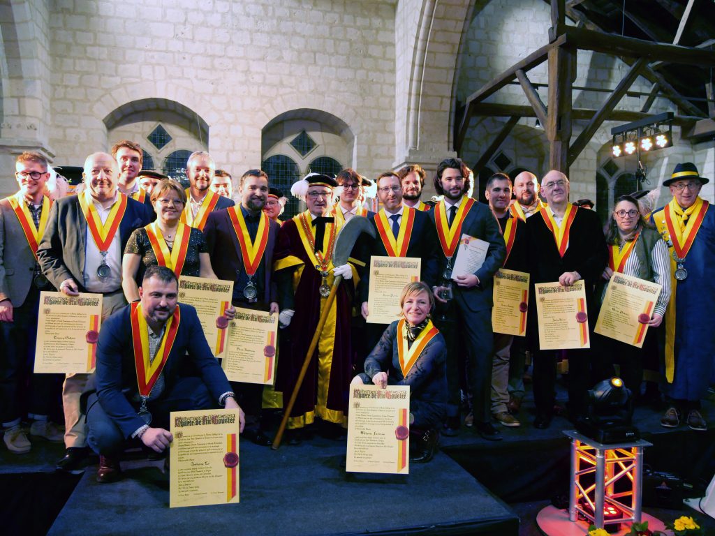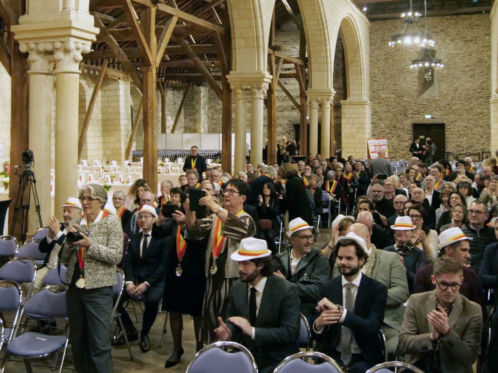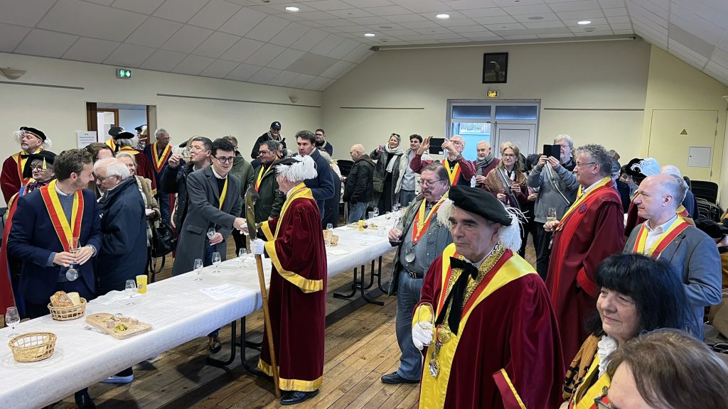 Cette soirée débuta par le chapitre d’intronisations. Sous les yeux du public, Jacques Lecomte notre Grand Maitre a présenté dans un premier temps les confréries invitées et donné la parole à Stephen Lehée maire délégué de Vauchrétien.