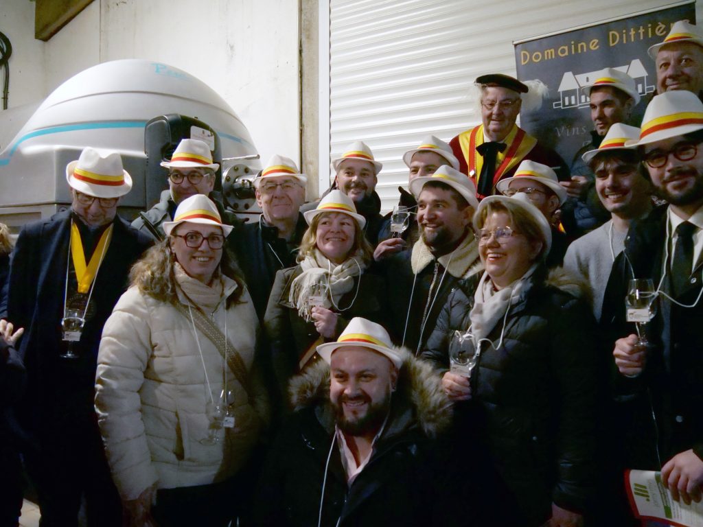 nous fûmes accueillis au « Domaine Dittière ». Septième génération, Bruno et Aurélien Dittière gèrent aujourd’hui ce domaine familial. Lors de la dégustation, les 19 prétendants au titre de « Chevaliers des Fins Gousiers » ont été attentifs aux vins proposés.
